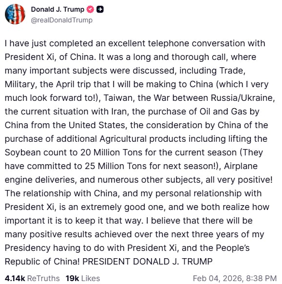 واشنگٹن (5 فروری 2026): امریکی صدر ڈونلڈ ٹرمپ نے چینی ہم منصب شی جن پنگ سے فون پر طویل اور اہم بات چیت کی تفصیلات بتا دیں۔ امریکی صدر نے گف...